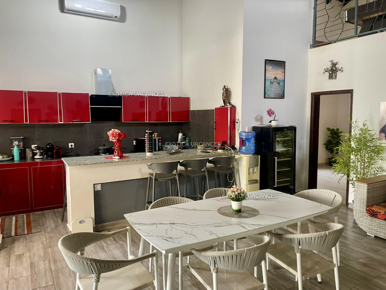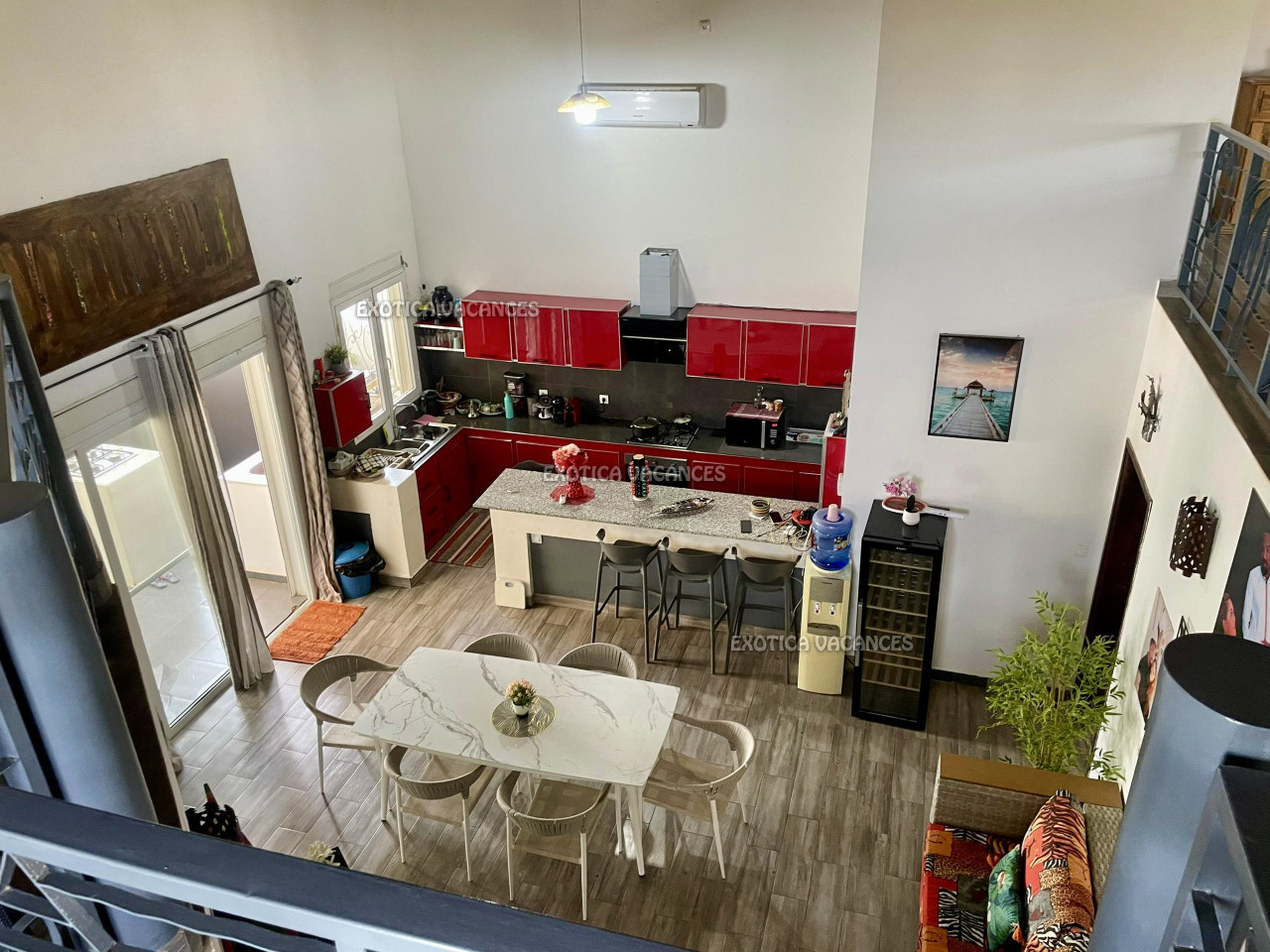 Une grande mezzanine aménagé avec billard, salon etc…