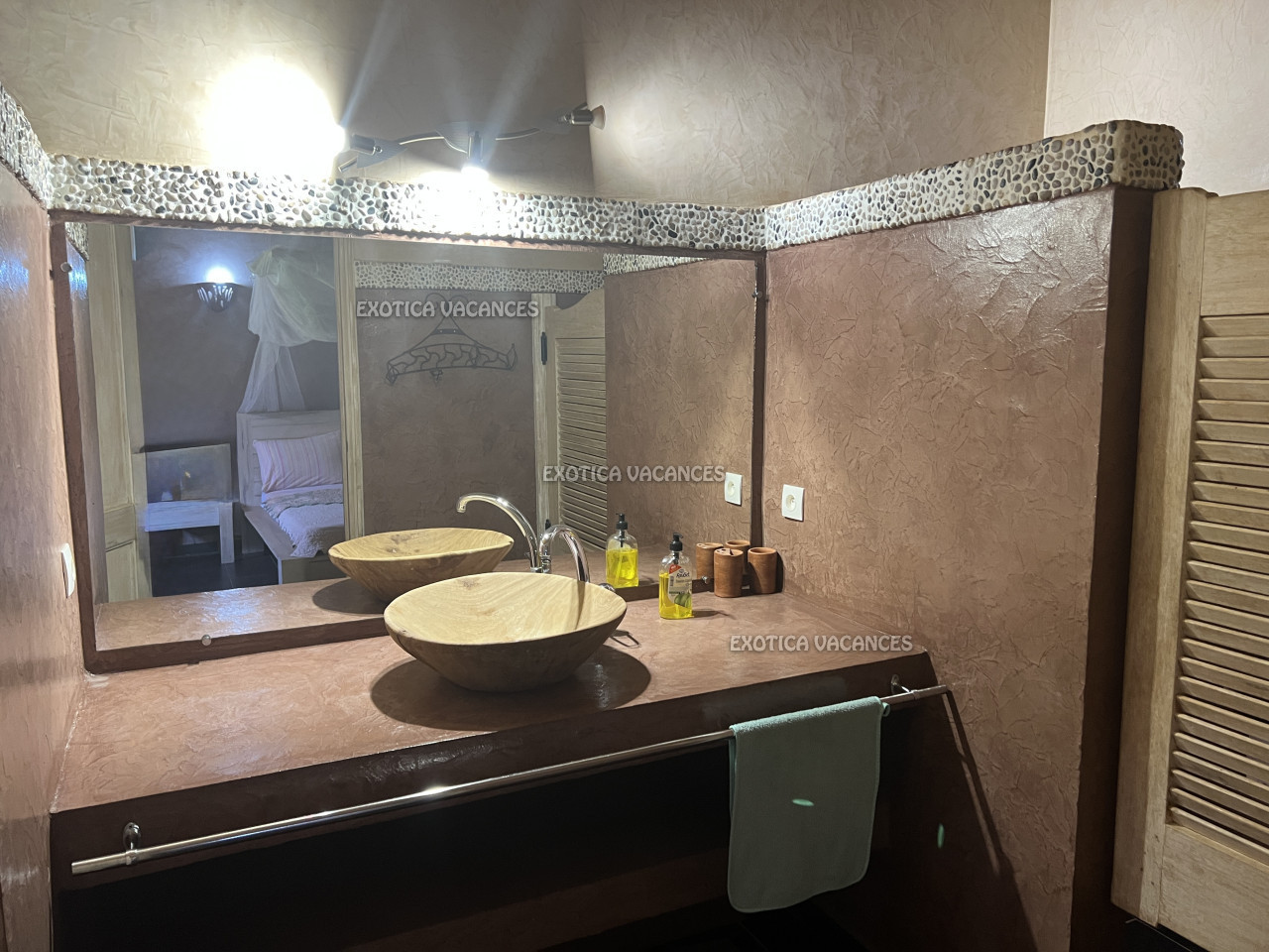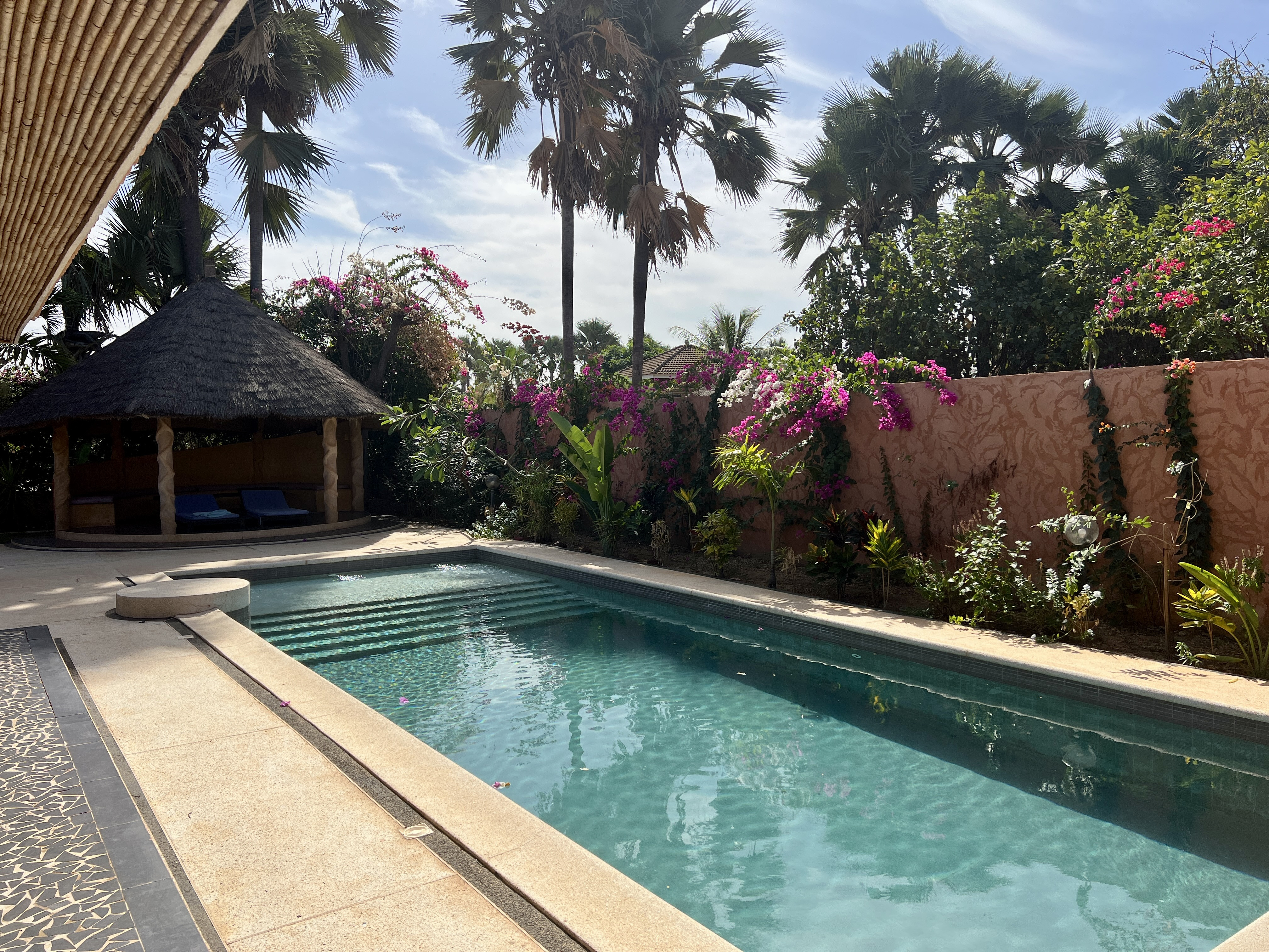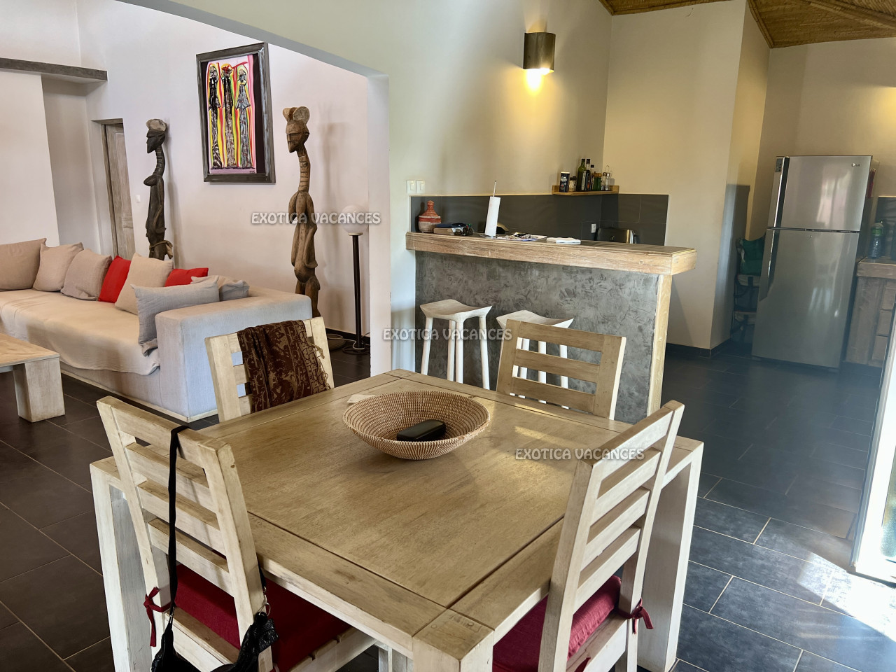 À l’extérieur, le jardin réserve de belles surprises avec une case cuisine parfaite pour les réceptions, ainsi qu’une case chambre supplémentaire, idéale pour accueillir famille ou invités.